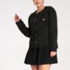 Classic checkered jacket a la Chanel. Jacket made of textured tweed-like material. Fastened with golden, decorative buttons. With sewn-on welt pockets.