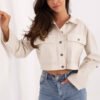 A short women’s denim jacket in a casual style is a classic piece of everyday wardrobe. Made of cotton with a touch of elastane, it ensures comfort, lightness, and gentle elasticity, guaranteeing freedom of movement. The buttoned model has long sleeves and practical pockets on the front with flaps, emphasizing the casual character of the jacket. The smooth pattern and universal cut make it perfect for many everyday stylings, from jeans to dresses.