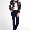 Elegant, short jacket in a floral pattern rounded at the neckline. This style will be perfect for any outfit, and the floral design will liven up the whole outfit.