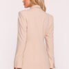 An elegant women’s blazer made of smooth fabric with a soft finish. The classic collar with hand-finished lapels emphasizes the timeless character of the model. The single-breasted button fastening and strongly tailored cut, achieved through front and back seams, beautifully accentuate the silhouette. The blazer has long, narrow sleeves and is fully lined, providing comfort and impeccable fabric draping. The length below the hip line makes the model look exceptionally elegant and pairs well with both suit trousers and an elegant skirt. The timeless, meticulously crafted design is perfect for business and formal stylings. Designed and made in Poland.