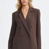 An elegant oversized women’s blazer is a must-have in a modern wardrobe. The collar with lapels gives it a classic character, and the double-breasted button fastening emphasizes a timeless, elegant style. The model is equipped with long sleeves ending with buttons and shoulder pads, which beautifully shape the silhouette and add a distinct form to the whole. The length below the hip line makes the blazer look great in both casual and more formal outfits. For greater comfort and aesthetic finish, the blazer has a full lining (100% polyester). This stylish proposal will work great paired with jeans, fabric pants, or a dress.