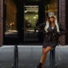 Stylish biker jacket made of soft, pleasant to the touch faux leather. The shorter, loose cut beautifully emphasizes the waist, and the asymmetrical zipper and belt give it a modern, urban character. Brown color combines perfectly with black, beige and denim, from everyday looks to evening stylizations. Choose timeless style. Choose a stylish chocolate biker jacket and wear it on your own terms.