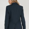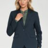An elegant women’s jacket with a slim fit, tailored to the silhouette, is the perfect choice for women who appreciate classic style with a modern twist. The model has a collar with classic lapels, long sleeves, and sewn-in shoulder pads that subtly shape the silhouette. The jacket is hip-length and fastens with one button, emphasizing the tailored fit. There are flap pockets at the front, and the whole jacket is finished with lining, ensuring comfort and an elegant look. It will work perfectly in office and casual outfits.