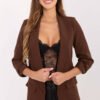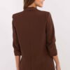 Stylish women’s blazer is a classic element of wardrobe that will add elegance to any outfit, both for work and for formal occasions. Made of a flexible blend of polyester and elastane, it perfectly fits the silhouette, ensuring comfortable wear. The model has sewn-in shoulder pads, which subtly emphasize the shoulder line, and ruches on the sleeves add a modern character and lightness to the whole. 3/4 sleeve and standard length make the blazer versatile and stylish in any situation. Blazer without fastening, with a practical lining, is an elegant base for many outfits from everyday, through office, to more formal stylings.