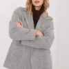 Classic women’s blazer with a casual character, perfect for everyday styling and work. The fir tree pattern adds a timeless chic to it, and the lapels emphasize the elegant silhouette. Made of a combination of cashmere and elastane, the blazer is soft, pleasant to the touch, and slightly stretchy, providing comfort for wearing all day long. With a standard length, long sleeves, and double-breasted button fastening, the model looks very chic while maintaining freedom of movement. The blazer has practical patch pockets and a lining that guarantees a neat finish and comfort while wearing. The lack of insulation makes it perfect for the autumn/winter season as an elegant wardrobe element for layered styling.