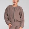 Women’s short jacket with long sleeves and a classic, round neckline. The model fastens with a zipper at the front, perfect for everyday casual stylizations. Finished at the waist with an elastic, slightly gathered and rolled-down ribbing, which gives the whole a casual and fashionable character. The jacket has practical slip pockets and slightly widened sleeves, providing comfort and a stylish look.