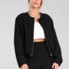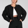 Women’s jacket with a short cut, long sleeves and a classic, round neckline. The model fastens with a zipper at the front, perfect for everyday casual styling. Finished at the waist with an elastic, slightly gathered and rolled down cuff, which gives the whole a casual and fashionable character. The jacket has practical slip pockets and slightly widened sleeves, providing comfort and a stylish look.