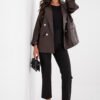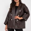 Fashionable women’s faux leather blazer is a stylish proposition for casual and office stylizations. Made of high-quality material combining viscose and polyurethane, it looks elegant and at the same time is comfortable to wear. The standard length model has lapels that emphasize the classic cut. Double-breasted button closure gives the blazer a distinctive, modern character. The imitation pockets serve a decorative function, maintaining a clean, smooth line at the front. The blazer has long sleeves, is not insulated or filled, making it perfect for layering in the spring / autumn / winter season. The smooth pattern makes it versatile and easy to match with both fabric pants, jeans, or a dress. It is the perfect choice for women who appreciate modern style, elegance, and timeless design.