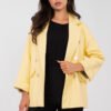 Stylish women’s blazer made of eco-leather is a fashionable proposition for casual and office stylizations. Made of high-quality material combining viscose and polyurethane, it looks elegant and at the same time is comfortable to wear. The model of standard length has lapels that emphasize the classic cut. The double-breasted button closure gives the blazer a distinctive, modern character. The imitation pockets serve a decorative function, maintaining a clean, smooth line at the front. The blazer has long sleeves, is not insulated or filled, making it perfect for layering in the spring / autumn / winter season. The smooth pattern makes it versatile and easy to combine with both fabric trousers and jeans or a dress. It is the perfect choice for women who appreciate modern style, elegance, and timeless design.