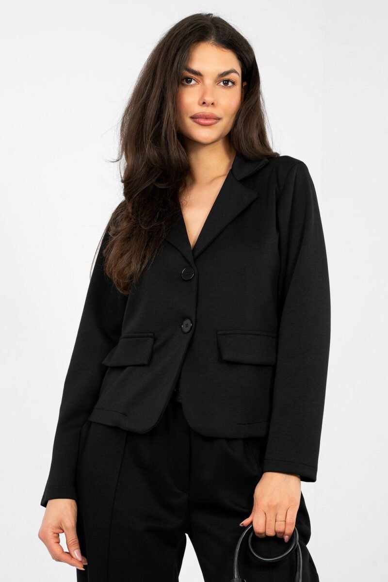 Stylish women’s blazer in a casual style, perfect for everyday wear and work. The classic form in a modern edition makes the model complement both office and less formal stylizations perfectly. Made of a high-quality blend of polyester, viscose, and elastane, it guarantees comfort, durability, and delicate elasticity. The smooth pattern emphasizes the blazer’s universal character and makes it easy to style. A model with a short length, long sleeves, and a single-breasted button fastening beautifully accentuates the silhouette and gives the whole outfit lightness. This is an excellent choice for women who appreciate comfort, classic style, and casual elegance in their daily looks.