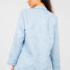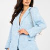 Elegant women’s blazer of standard length, which perfectly combines classic style with a subtle hint of originality. The model stands out with a textured fabric and an eye-catching flower embossing, giving the whole a unique, feminine character. Made of high-quality polyester and viscose blend, it ensures comfort, durability, and a stylish look for a long time. Long sleeves and lapels emphasize the timeless cut, and the single-button closure adds elegance and versatility. The blazer has a lining, which makes it fit nicely on the silhouette and ensures comfort when wearing. It is an ideal choice for both office outfits and special occasions when you want to look stylish and classy.