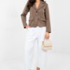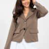 Stylish women’s jacket in a casual style, perfect for everyday wear and for work. The classic form in a modern edition makes the model a great addition to both office and less formal stylizations. Made of a high-quality blend of polyester, viscose, and elastane, it guarantees comfort, durability, and gentle elasticity. The smooth pattern emphasizes the universal character of the jacket and makes it easy to style. The model with a short length, long sleeves, and a single-button fastening beautifully accentuates the silhouette and gives the whole a lightness. It is an excellent choice for women who appreciate comfort, classic style, and casual elegance in their everyday look.