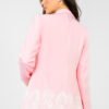 Stylish women’s blazer with a timeless, elegant character. The smooth pattern makes the model versatile and easy to style, perfectly matching both elegant trousers, a skirt, and jeans for a more casual look. A model of standard length, with long sleeves, fastened with a single button, beautifully accentuates the silhouette. Sewn shoulder pads give the structure prominence and subtly shape the shoulder line, adding a professional character to the whole. The blazer has a lining, which makes it comfortable to wear and comfortable. At the bottom, it is finished with sewn decorative lace, which adds a feminine, delicate accent and distinguishes the model from classic cuts. Made of durable and flexible polyester blend with elastane, it provides comfort and freedom of movement. It is the perfect choice for women looking for an elegant jacket with a subtle, decorative detail.