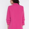 The elegant women’s jacket with a classic regular cut is a timeless wardrobe piece that will work perfectly in both everyday and more formal stylizations. The model has lapels and 3/4 sleeves, finished with subtle pleating, adding delicate lightness and feminine character to the whole. Fastened with one button, it allows for quick and comfortable adjustment, and shoulder pads subtly shape the silhouette, emphasizing the shoulder line. There are imitation pockets at the front, giving the jacket a fashionable, modern look, and a full lining ensures comfort and durability of the material. This is a versatile model that pairs well with trousers, skirts, or dresses, creating stylish and elegant outfits for any occasion.