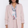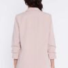 The elegant women’s jacket with a classic regular cut is a timeless wardrobe staple that will work perfectly in both everyday and more formal stylings. The model has lapels and 3/4 sleeves, finished with subtle gathering, which adds delicate lightness and a feminine character to the overall look. Fastened with one button, it allows for quick and comfortable fitting, while the shoulder pads subtly shape the silhouette, emphasizing the shoulder line. There are imitation pockets at the front, giving the jacket a trendy, modern look, and the full lining ensures comfort and durability of the material. This versatile model pairs well with trousers, skirts, or dresses, creating stylish and elegant outfits for any occasion.