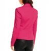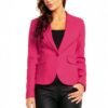 Simple and elegant jacket with one button in the middle. A deep, pointed collar at the neckline. Decorative patches imitating pockets on the sides. Perfect for transitional seasons. Cotton lined jacket suitable for business meetings and family events in autumn and spring.