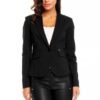 Simple and elegant jacket with one button in the middle. A deep, pointed collar at the neckline. Decorative patches imitating pockets on the sides. Perfect for transitional seasons. Cotton lined jacket suitable for business meetings and family events in autumn and spring.