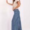 Women’s palazzo style jeans are the perfect everyday choice for comfort and modern styles lovers. Made of high-quality cotton, they provide comfort and durability. The model has a casual character, with a high waist that emphasizes the waist and visually elongates the legs. It has front slip pockets and open back pockets, adding functionality and a classic finish. The wide palazzo-style legs give the silhouette lightness and fit into current trends. The jeans are fastened with a zipper and button, ensuring a stable and comfortable fit. The model with a smooth pattern, perfect for everyday stylizations, looks great both with a T-shirt and an elegant blouse.