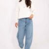 Women’s balloon fit jeans are a fashionable proposition for everyday wear in a casual style. Made of high-quality cotton, they provide comfort and freedom of movement. The high waist beautifully emphasizes the waist, and the characteristic cut with a looser top and tapered legs gives the silhouette a modern look. There are practical slip pockets on the front, and classic open pockets on the back. The model is fastened with a zipper and button, made of smooth denim, which can be easily matched to many everyday stylizations.