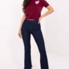 Stylish and comfortable women’s bell-bottom jeans with eye-catching finish, frayed hems at the bottom, which give the styling a slightly rock, casual character. Made of durable and elastic blend of cotton, polyester and elastane, they provide comfort and freedom of movement throughout the day. The model has a high waist with an elastic band, which guarantees a perfect fit to the silhouette and comfort, and wide bell-bottom legs visually elongate the legs and create a fashionable, loose look. The jeans have a smooth material pattern, no classic fastening and no pockets, emphasizing the minimalist, modern character. This is an ideal proposal for everyday, casual stylizations, combining comfort with a distinctive, fashionable design.
