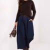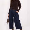 Casual women’s culotte jeans, perfect for everyday styling. Made of a blend of cotton and elastane, they provide comfort, freedom of movement, and slight elasticity. The smooth material emphasizes the universal character of the model, making it easy to match the pants to many outfits. The model has a high waist, and an elastic band is sewn in the back of the waist, which increases comfort and allows for a perfect fit. The set includes a fastened belt, which allows you to additionally emphasize the waist. The wide legs characteristic of culotte style give the pants a trendy, casual look. The pants do not have a classic closure, which increases comfort of use. They are equipped with side, slip pockets, which add practicality for everyday wear. This is an ideal proposition for women who value comfort, trendy style, and casual urban style.