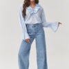 Stylish high-waisted women’s jeans are a timeless wardrobe piece that combines comfort with a fashionable look. The model with straight, wide legs beautifully slims the silhouette and provides freedom of movement. The classic denim color of the jeans makes them extremely versatile and easy to style, perfect for both everyday wear and more elegant outfits. The pants are made of high-quality denim that drapes well on the figure and maintains its shape even after many washes. The high waist emphasizes the waist, and the practical pockets add functionality and a casual character. This is an excellent choice for women who appreciate fashion, comfort, and classic style in a modern edition. Made in Italy.