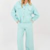 Women’s wide leg jeans are a stylish and comfortable choice for everyday wear, perfect for casual styling. Smooth cut and wide legs give them a fashionable, relaxed character and ensure comfort throughout the day. The pants look great with both a classic T-shirt and an elegant blouse. The model is made of high-quality cotton, which guarantees durability and comfort of use. The high waist beautifully accentuates the waist and shapes the silhouette, while the elastic band sewn at the back in the waist ensures a better fit and additional comfort. The classic zip and button fastening and side pockets enhance the functionality of the pants. Decorative lace at the bottom of the legs adds a subtle, feminine accent that sets this model apart from classic jeans.