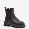 Slip-on boots from Big Star brand are perfect for many outfits! Made of natural leather. They feature a flat heel and a platform with a tread. Interior lined with shoe blanket for extra warmth. Rounded noses and elastic inserts on the upper are their distinctive features. In addition, this model has a reinforced heel counter.