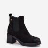 Women’s ankle boots made of eco suede. Set on a column-shaped heel that provides stability and comfort throughout the day. Lined, guaranteeing warmth on cooler days, and a zipper makes them easy to put on. On the side of the upper, there is a subtle, golden detail that adds an elegant accent to them. Perfect for everyday stylizations that require both comfort and a fashionable look.