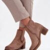 Women’s ankle boots made of eco suede. Set on a column-shaped heel that provides stability and comfort throughout the day. Lined, guaranteeing warmth on colder days, and a zipper makes them easy to put on. On the side of the upper, there is a subtle, golden detail that adds an elegant touch. Perfect for everyday stylizations that require both comfort and a fashionable look.