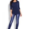 Sweater with a delicate weave. In the upper part of the braids. Sweater with 3/4 sleeves and a round neckline.