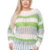 Short pullover with openwork weave. Sweater with colorful stripes. Sweater with a soft yarn.