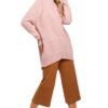 Lightweight and pleasant to the touch, with asymmetry at the bottom and a high ribbed neck, this sweater is not only warm but also a stylish addition to your cold weather styling. The bottom hem is half round, the front is shorter than the back and has a ribbed hem. Long sleeves with ribbed cuffs.