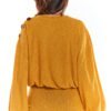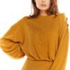 Long-sleeved sweater with a kimono cut. Oversized cut, decorative buttons on shoulders in subdued color add to its character. Elastic at cuffs and waist make it look great with tailored trousers or pencil skirt e.g. A317