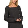 Small details such as decorative gold buttons at the reglan sleeves and the raw-finished neckline add to the unique character of this seemingly simple over-the-shoulder sweater.