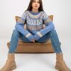 Women’s sweater with long sleeves and a stand-up collar. Sweater with an interesting decorative pattern.