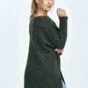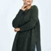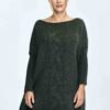 Loose sweater with a boat neckline, ribbed sleeves, decorative plaid on the front, cracks on the sides.