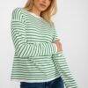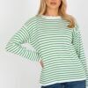 Women’s sweater with a classic cut in colorful stripes, with long sleeves and a round neckline.