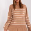 This casual striped sweater is a great choice for everyday occasions. Made of soft and warm material with 100% acrylic composition, it guarantees comfort and convenience. Its long sleeve with decorative buttons adds charm and originality, while the round neckline gives it a classic look. The sweater has a standard length, which makes it suitable for a variety of outfits. The stripes add to its fashionable and varied design. It is an ideal choice for those who appreciate both comfort and style.