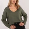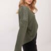 Elegant women’s sweater ideal both for special occasions and for everyday styling and work. Made of a pleasant to the touch blend of viscose and elastane, it provides comfortable all-day wear. The sweater has a standard length and long sleeves, making it a practical choice for colder days. The neckline in a classic round shape adds subtlety, and the enrichment of the shoulders with decorative rhinestones and sparkling zircons gives the whole a chic, sophisticated character. This is a model that will work well both in the office and at more formal meetings.