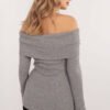 Stylish women’s sweater, perfect for both everyday wear and work. Made of high-quality blend of viscose and elastane, it ensures comfort and perfect fit. The sweater has a ribbed, varied texture of the material, which gives it character and subtle elegance. It has long sleeves and a off-the-shoulder neckline, which effectively highlights the shoulders, giving the styling femininity. Additionally, the shiny thread on the surface of the material adds a delicate, elegant glow to the whole. It is a perfect choice for women who appreciate comfort and style in their daily stylings.