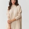 Oversized women’s sweater with a predominance of viscose is the quintessence of comfort and feminine elegance in everyday styling. The soft, delicate material envelops the body like a second skin, providing comfort throughout the day regardless of the occasion. Thanks to the oversized cut and subtle side slits, the sweater beautifully drapes on the silhouette, adding lightness and freedom. The turtleneck not only emphasizes the neck, but also gives the whole a modern, sophisticated character. This is the perfect choice for women who appreciate the combination of simplicity and style, it goes well with both jeans and elegant trousers or leggings. This model will become your favorite companion on colder days, enveloping you in softness and subtle elegance.