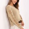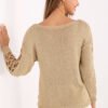 An elegant women’s sweater of standard length, made of high-quality viscose with the addition of metallic yarn, which subtly shines and adds a unique character to the whole. The model stands out with trendy cut-outs on the sleeves, giving the classic form a modern accent. The smooth pattern makes the sweater versatile and easy to combine with other wardrobe items. Long sleeves and a round neckline give it timeless elegance while ensuring comfort. It will work perfectly both for everyday wear and in work outfits, emphasizing feminine chic in a simple yet eye-catching way.