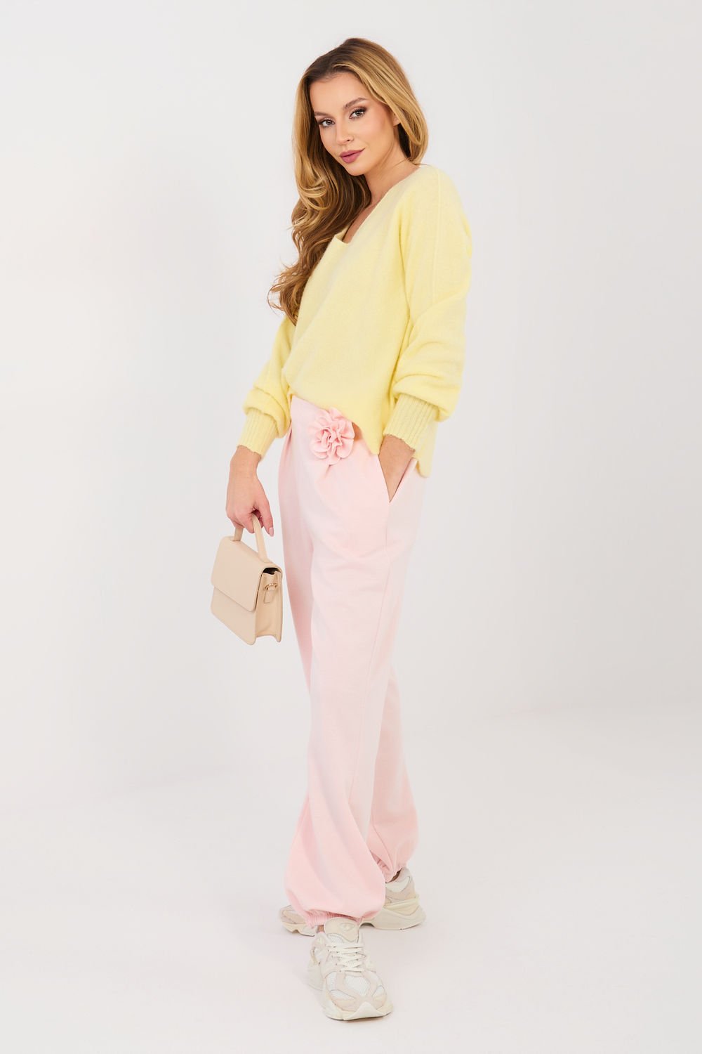 A loose women’s sweater is the perfect choice for everyday styling and for work when comfort and a fashionable, casual character matter. Its loose cut ensures wearing comfort and fits well on the silhouette, giving many styling options. The model stands out with a varied texture of the material, which adds distinctiveness and a unique character. Made of a blend of acrylic, wool, viscose, and polyamide, it is soft, pleasant to the touch, and adequately warm, perfect for colder days. The sweater has a standard length, long sleeves, and a round neckline, emphasizing its classic yet modern form. An additional asset is the puffy sleeves, which give the whole a light, fashionable elegance. The model does not have a fastening, it is put on over the head, emphasizing its casual character. This is a great proposition for women who value style, comfort, and subtly distinctive details.