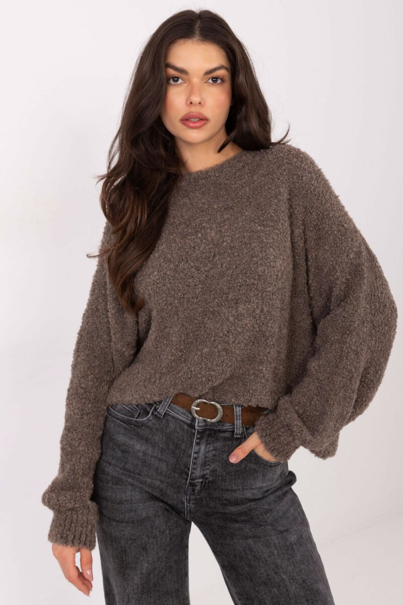 Women’s oversize casual sweater is a comfortable and fashionable proposition for everyday wear. The loose fit ensures freedom of movement and comfort, while also giving the outfit a modern, relaxed character. The sweater is made of a pleasant to the touch blend of acrylic, wool, viscose, and polyamide, which guarantees warmth and durability. The model with a standard length and long, puffy sleeves looks feminine and striking. The classic, round neckline makes the sweater versatile and easy to style. The smooth pattern makes it a timeless wardrobe piece, perfect for everyday outfits with jeans, leggings, or a skirt.