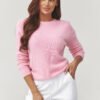 Stylish women’s sweater with a round neckline is the perfect choice for women who appreciate the combination of simplicity, comfort, and elegance. Made of soft, pleasant to the touch yarn, it provides comfort throughout the day and is perfect for cooler days. The loose cut subtly envelops the silhouette, while the slightly dropped shoulders and wide sleeves add a trendy, modern character to the whole. This model looks great both paired with jeans, fabric trousers, and a midi skirt perfect for work, school, or meeting friends. Available in fashionable spring colors. Manufactured in Italy.