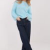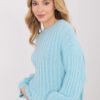 Women’s sweater with a casual character, made of thick knit material, perfect for cooler days. An ideal model for everyday wear and work, combining comfort with classic style. The smooth pattern gives it a universal look, while the ribbed structure of the material emphasizes its fashionable character. The sweater is made of a high-quality blend of polyacrylic, polyamide, viscose, and wool, providing warmth, softness, and comfort. Standard length, round neckline, and no fastening create a timeless cut. Long, puffy sleeves add feminine charm and originality to the whole, making the sweater a stylish element of everyday stylizations.