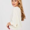 Stylish women’s sweater in a casual version, perfect for everyday wear and for work. A model with a smooth pattern that fits perfectly into classic and universal stylizations. Made of high-quality blend of acrylic, viscose, polyamide and alpaca, it provides comfort, softness and pleasant warmth. The standard length makes the sweater look great with both pants and a skirt. 3/4 length sleeves finished with a subtle ruffle add a feminine character and lightness to the whole. The boat-shaped neckline elegantly emphasizes the shoulder line.