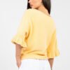 An elegant women’s sweater of standard length, perfect for both everyday wear and more special occasions. Made of high-quality blend of viscose, polyester and nylon, it provides comfort and durability. The smooth pattern gives it a timeless character, while subtle details add feminine charm. The model features a round neckline and 3/4 sleeves finished with a delicate frill, which emphasize elegance and lightness of the outfit. This is a perfect choice for women who appreciate classic style with a modern twist.