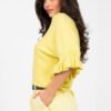 Elegant women’s sweater of standard length, perfect for both everyday wear and more special occasions. Made of high-quality blend of viscose, polyester, and nylon, it provides comfort and durability. The smooth pattern gives it a timeless character, and the subtle details add feminine charm. The model features a round neckline and 3/4 sleeves finished with a delicate ruffle, which emphasize the elegance and lightness of the styling. This is an excellent choice for women who appreciate classic style in a modern edition.